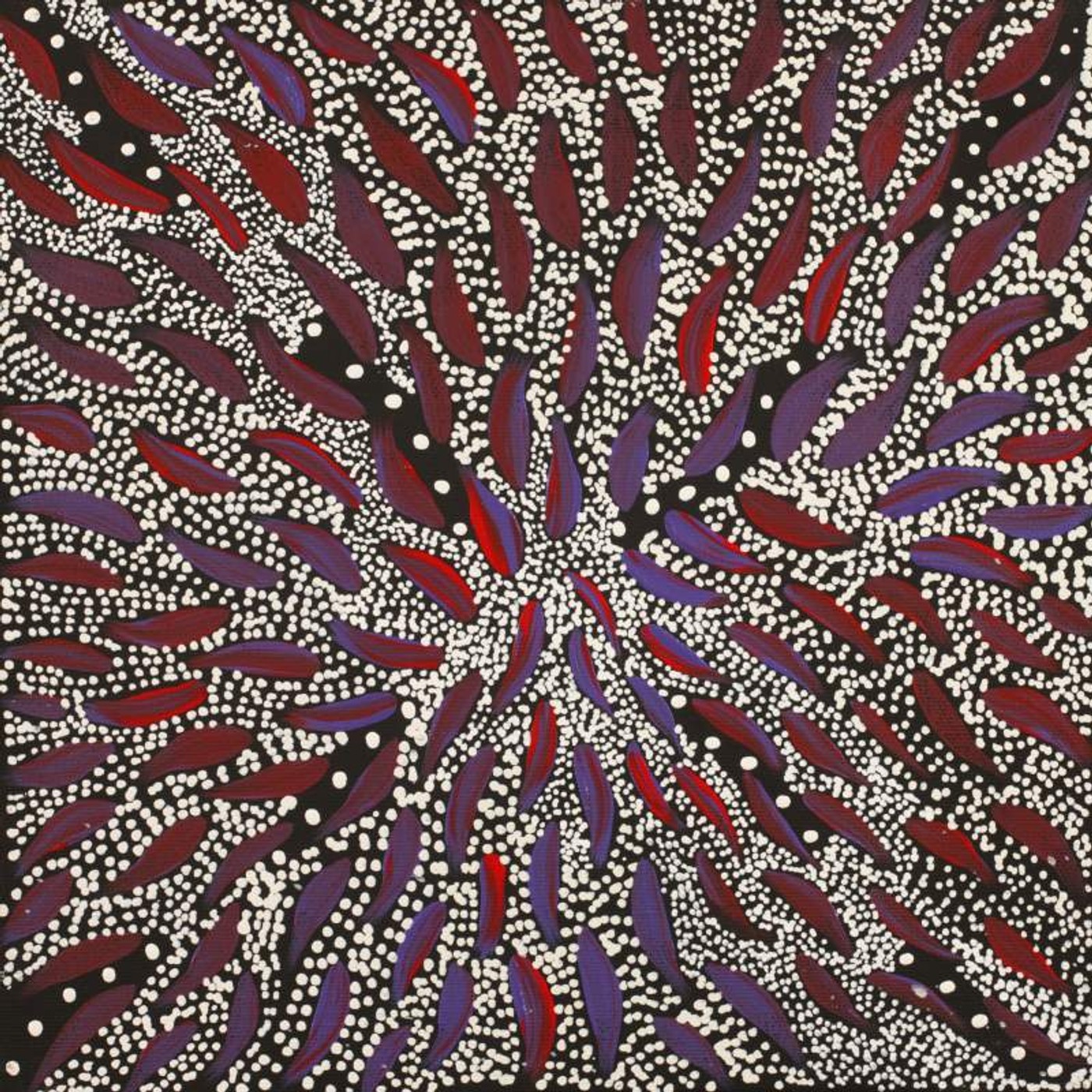 In contemporary Warlpiri paintings, traditional iconography can be used to represent the Jukurrpa, particular sites, and other elements. In paintings of this Jukurrpa, the group of women is often represented by concentric circles and ‘U’ shapes. Concentric circles can also illustrate ‘wardapi’ holes and the droppings they leave, while ‘wardapi’ tracks are usually represented by ‘W’ shapes.