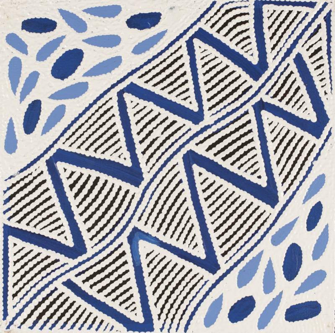 Pikilyi is a large and important waterhole and natural spring near Mount Doreen station. Pikilyi Jukurrpa (Vaughan Springs Dreaming) tells of the home of two rainbow serpents, ancestral heroes who lived together as man and wife. The woman ‘rainbow serpent’ was of the Napanangka skin group, the man was a Japangardi. This was a taboo relationship contrary to Warlpiri religious law. Women of the Napanangka and Napangardi subsection sat by the two serpents, picking lice off them. For this service, the two serpents allowed the women to take water from the springs at Pikilyi. This was because the serpents were the ‘kirda’, or ceremonial owners, for that country. The spirits of these two rainbow serpents are still at Pikilyi today. This Dreamings belongs to the women and men of the Japanangka/Napanangka and Japangardi/Napangardi skin groups.