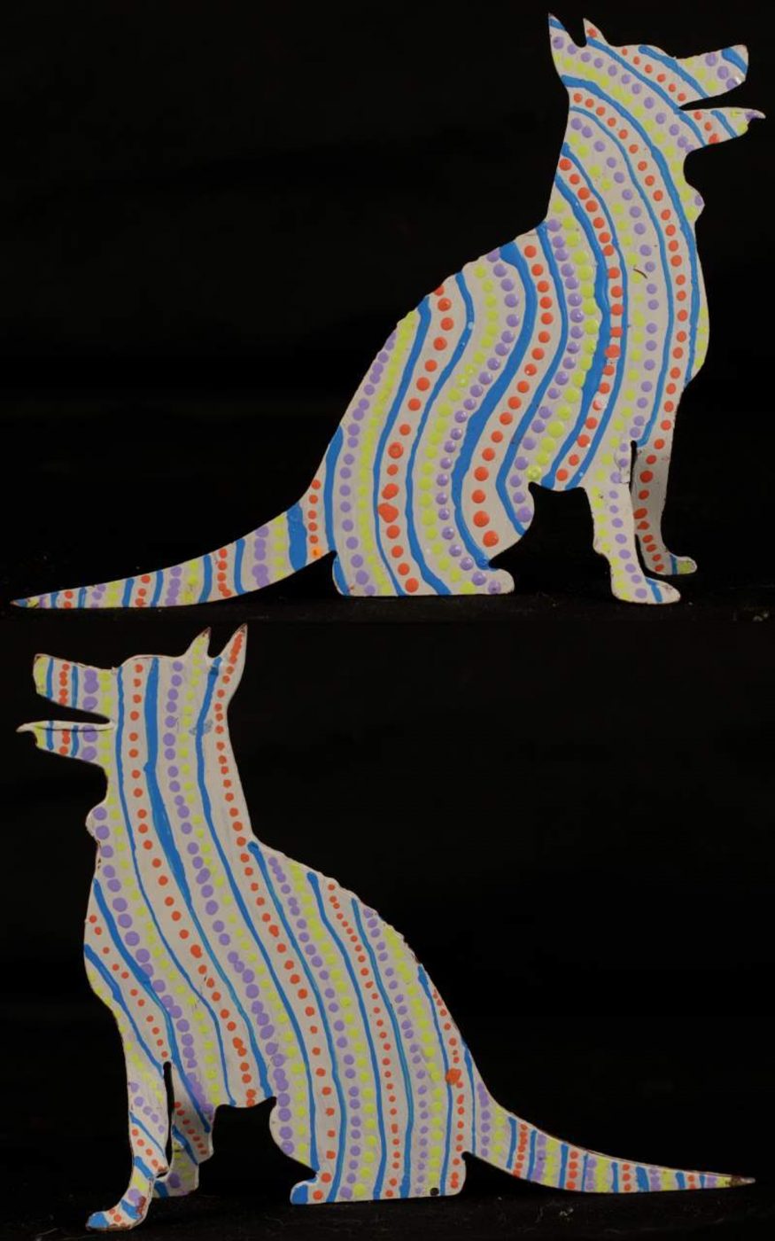 ‘Jarntu’ or ‘maliki’ also feature in a number of ‘Jukurrpa’ (Dreaming) stories. One ‘maliki Jukurrpa’ (dog Dreaming) comes from a site called Pindara, southwest of Yuendumu. Another dog Dreaming story, ‘malikijarra Jukurrpa’ (two dogs Dreaming), comes from country adjacent to Warlarla (Rabbit Flat). This site is part of a long Dreaming track that stretches from Yarrajalpa in the extreme west of Warlpiri country to Warlaku (Ali Curung) in the east. This Dreaming story describes proper conduct in families and marriages.