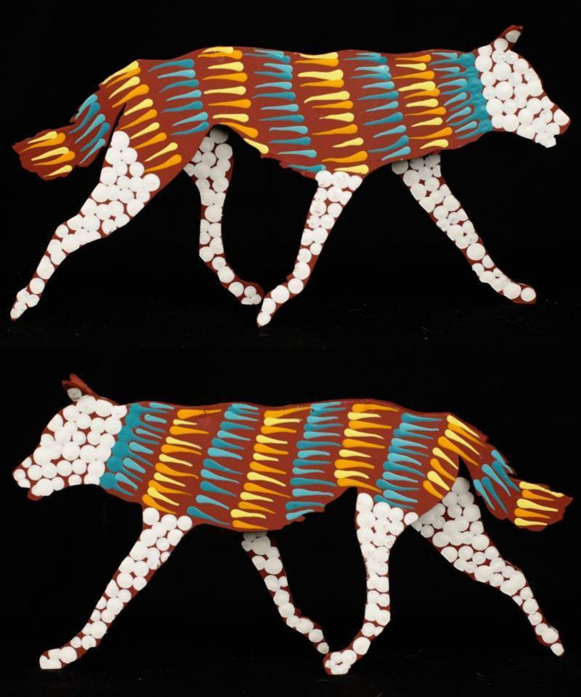 ‘Jarntu’ or ‘maliki’ also feature in a number of ‘Jukurrpa’ (Dreaming) stories. One ‘maliki Jukurrpa’ (dog Dreaming) comes from a site called Pindara, southwest of Yuendumu. Another dog Dreaming story, ‘malikijarra Jukurrpa’ (two dogs Dreaming), comes from country adjacent to Warlarla (Rabbit Flat). This site is part of a long Dreaming track that stretches from Yarrajalpa in the extreme west of Warlpiri country to Warlaku (Ali Curung) in the east. This Dreaming story describes proper conduct in families and marriages.