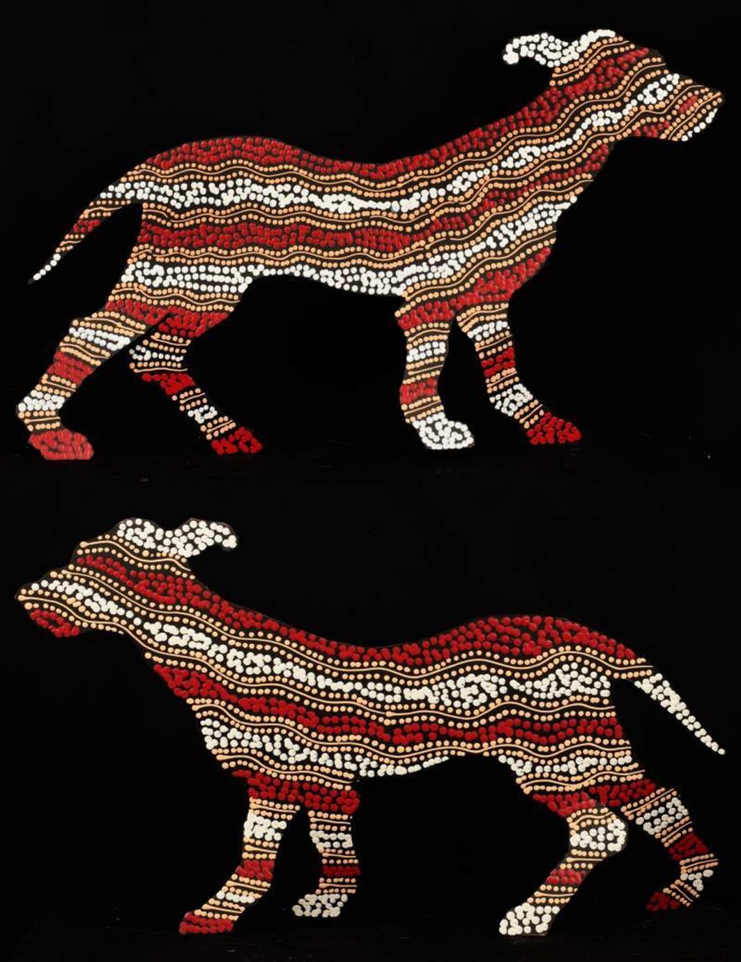 ‘Jarntu’ or ‘maliki’ also feature in a number of ‘Jukurrpa’ (Dreaming) stories. One ‘maliki Jukurrpa’ (dog Dreaming) comes from a site called Pindara, southwest of Yuendumu. Another dog Dreaming story, ‘malikijarra Jukurrpa’ (two dogs Dreaming), comes from country adjacent to Warlarla (Rabbit Flat). This site is part of a long Dreaming track that stretches from Yarrajalpa in the extreme west of Warlpiri country to Warlaku (Ali Curung) in the east. This Dreaming story describes proper conduct in families and marriages.