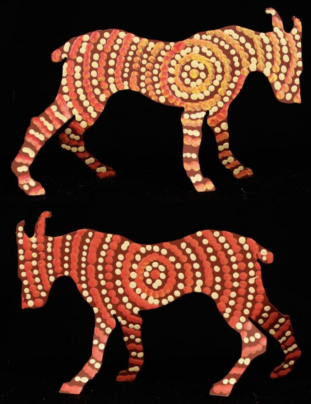 ‘Jarntu’ or ‘maliki’ also feature in a number of ‘Jukurrpa’ (Dreaming) stories. One ‘maliki Jukurrpa’ (dog Dreaming) comes from a site called Pindara, southwest of Yuendumu. Another dog Dreaming story, ‘malikijarra Jukurrpa’ (two dogs Dreaming), comes from country adjacent to Warlarla (Rabbit Flat). This site is part of a long Dreaming track that stretches from Yarrajalpa in the extreme west of Warlpiri country to Warlaku (Ali Curung) in the east. This Dreaming story describes proper conduct in families and marriages.
