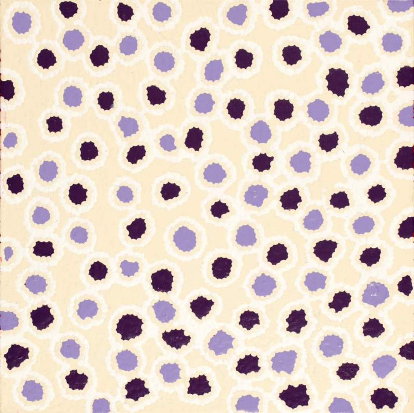 The ‘kirda’ (owners) of this country are Napangardi/Napanangka women and Japangardi/Japanangka men, who can depict portions of the Mina Mina Jukurrpa in their paintings. There are a number of different components of the Mina Mina Jukurrpa; artists usually choose to depict one particular aspect. These can include ‘karnta’ (women), ‘karlangu’ (digging sticks), ‘majardi’ (hairstring skirts/tassels), ‘ngalyipi’ (snakevine [Tinospora smilacina]), ‘jintiparnta’ (desert truffle [Elderia arenivaga]), and ‘kurrkara’ (desert oak [Allocasuarina decaisneana]).