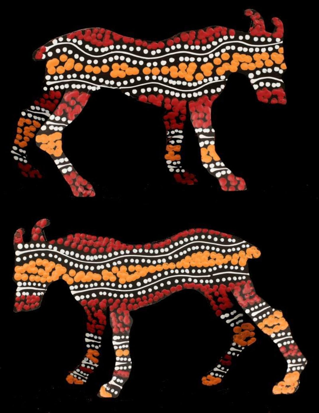 ‘Jarntu’ or ‘maliki’ also feature in a number of ‘Jukurrpa’ (Dreaming) stories. One ‘maliki Jukurrpa’ (dog Dreaming) comes from a site called Pindara, southwest of Yuendumu. Another dog Dreaming story, ‘malikijarra Jukurrpa’ (two dogs Dreaming), comes from country adjacent to Warlarla (Rabbit Flat). This site is part of a long Dreaming track that stretches from Yarrajalpa in the extreme west of Warlpiri country to Warlaku (Ali Curung) in the east. This Dreaming story describes proper conduct in families and marriages.