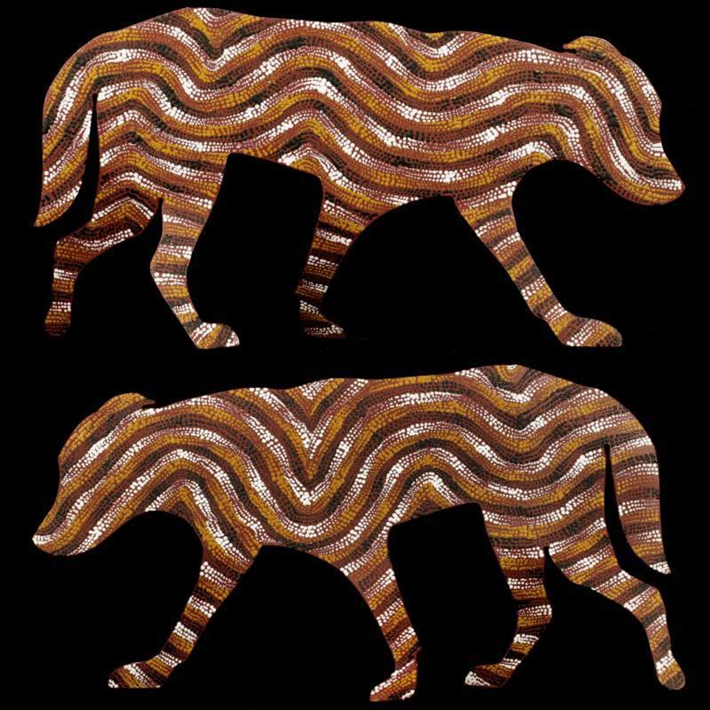 ‘Jarntu’ or ‘maliki’ also feature in a number of ‘Jukurrpa’ (Dreaming) stories. One ‘maliki Jukurrpa’ (dog Dreaming) comes from a site called Pindara, southwest of Yuendumu. Another dog Dreaming story, ‘malikijarra Jukurrpa’ (two dogs Dreaming), comes from country adjacent to Warlarla (Rabbit Flat). This site is part of a long Dreaming track that stretches from Yarrajalpa in the extreme west of Warlpiri country to Warlaku (Ali Curung) in the east. This Dreaming story describes proper conduct in families and marriages.