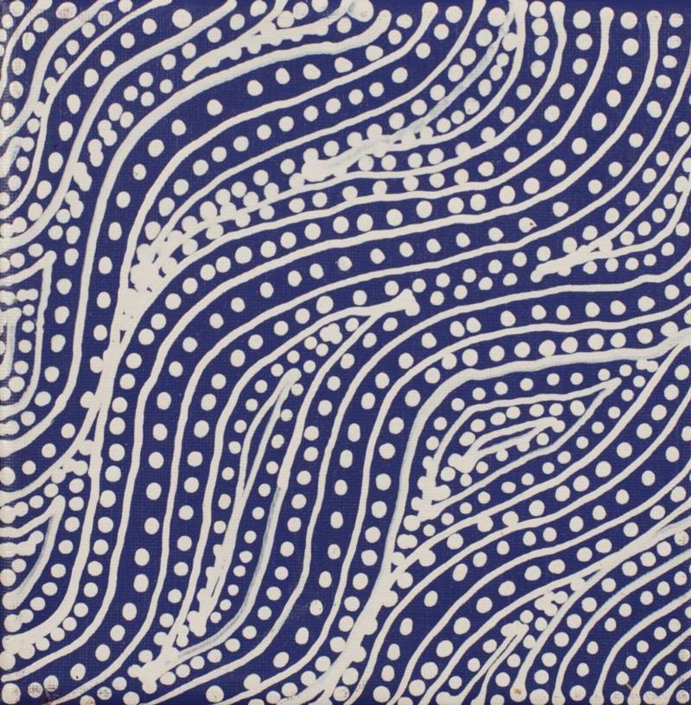 The country in this painting is Yanjirlpiri, a small hill to the west of Yuendumu. Yanjirlpiri has a number of ‘mulju’ (water soakages), including Pulpa and Lungkukurra, and ‘warnirri’ (rockholes), including Walka, Ngarnamirdi, Jangarnka, and Warnapirri. The name ‘yanjirlpiri’ means ‘star’ in Warlpiri.