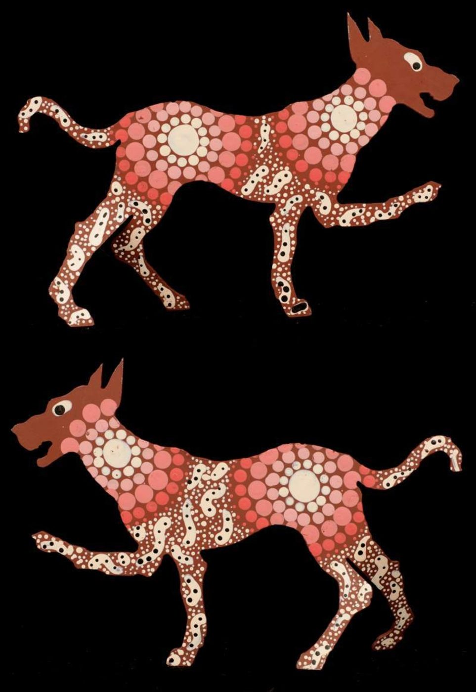 ‘Jarntu’ or ‘maliki’ also feature in a number of ‘Jukurrpa’ (Dreaming) stories. One ‘maliki Jukurrpa’ (dog Dreaming) comes from a site called Pindara, southwest of Yuendumu. Another dog Dreaming story, ‘malikijarra Jukurrpa’ (two dogs Dreaming), comes from country adjacent to Warlarla (Rabbit Flat). This site is part of a long Dreaming track that stretches from Yarrajalpa in the extreme west of Warlpiri country to Warlaku (Ali Curung) in the east. This Dreaming story describes proper conduct in families and marriages.