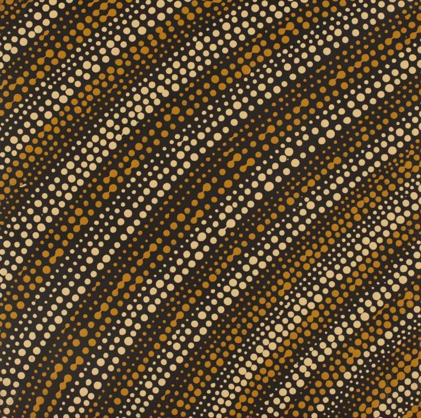 The ‘kirda’ (owners) of this country are Napangardi/Napanangka women and Japangardi/Japanangka men, who can depict portions of the Mina Mina Jukurrpa in their paintings. There are a number of different components of the Mina Mina Jukurrpa; artists usually choose to depict one particular aspect. These can include ‘karnta’ (women), ‘karlangu’ (digging sticks), ‘majardi’ (hairstring skirts/tassels), ‘ngalyipi’ (snakevine [Tinospora smilacina]), ‘jintiparnta’ (desert truffle [Elderia arenivaga]), and ‘kurrkara’ (desert oak [Allocasuarina decaisneana]).