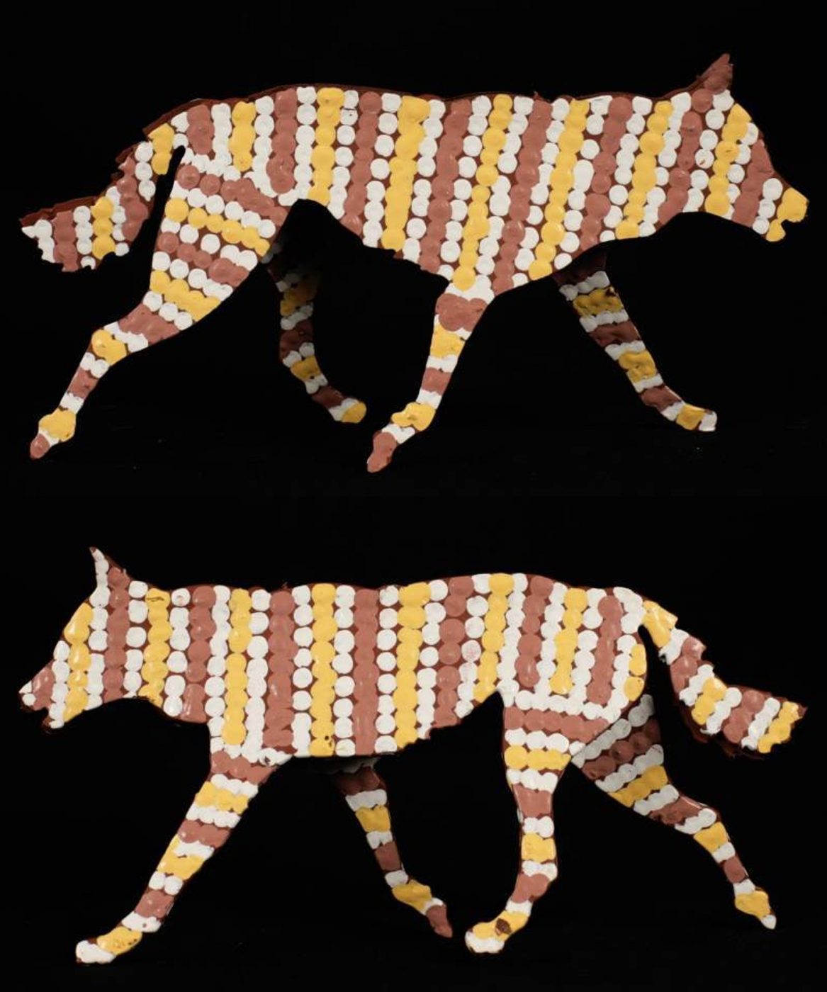 ‘Jarntu’ or ‘maliki’ also feature in a number of ‘Jukurrpa’ (Dreaming) stories. One ‘maliki Jukurrpa’ (dog Dreaming) comes from a site called Pindara, southwest of Yuendumu. Another dog Dreaming story, ‘malikijarra Jukurrpa’ (two dogs Dreaming), comes from country adjacent to Warlarla (Rabbit Flat). This site is part of a long Dreaming track that stretches from Yarrajalpa in the extreme west of Warlpiri country to Warlaku (Ali Curung) in the east. This Dreaming story describes proper conduct in families and marriages.