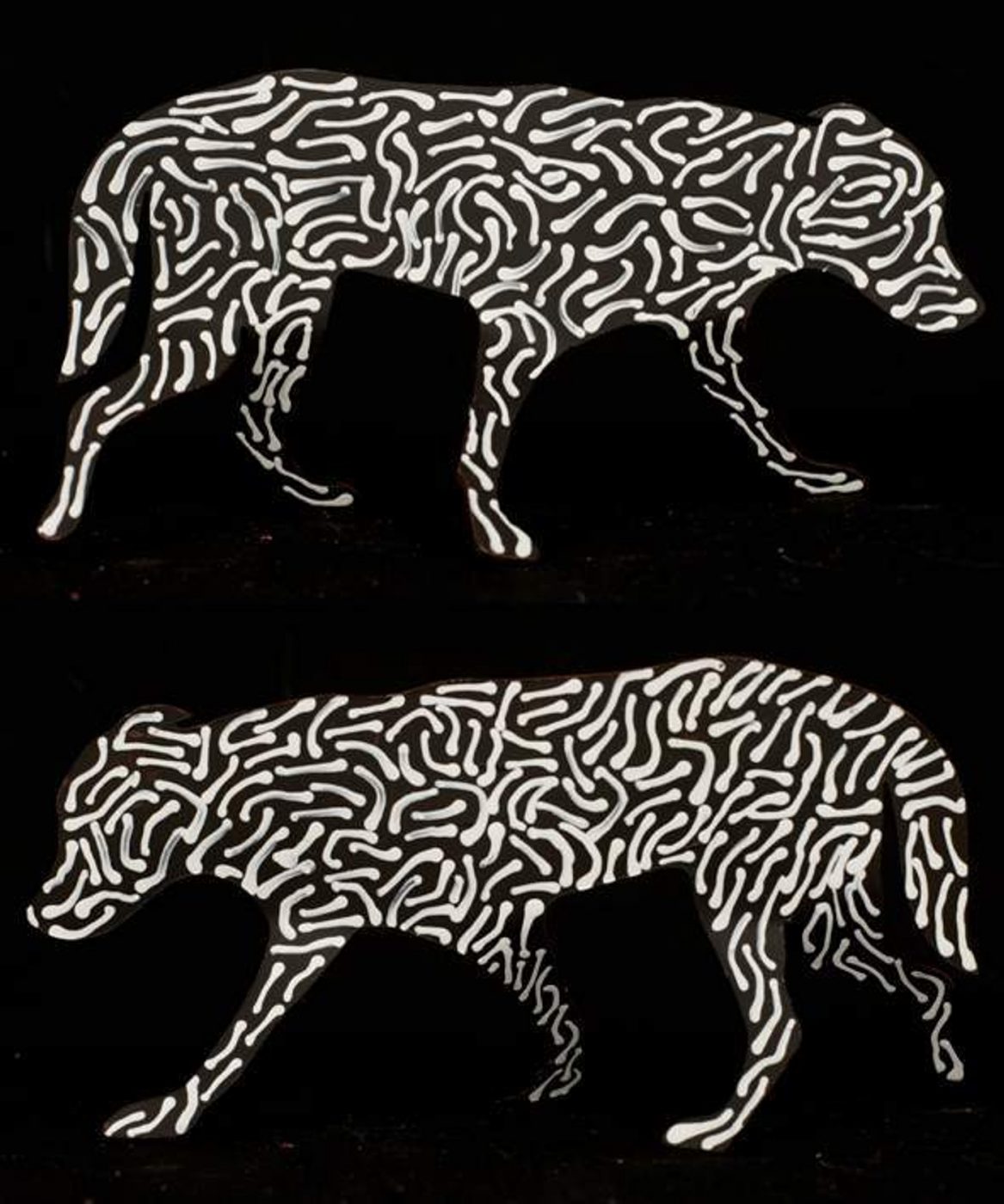 ‘Jarntu’ or ‘maliki’ also feature in a number of ‘Jukurrpa’ (Dreaming) stories. One ‘maliki Jukurrpa’ (dog Dreaming) comes from a site called Pindara, southwest of Yuendumu. Another dog Dreaming story, ‘malikijarra Jukurrpa’ (two dogs Dreaming), comes from country adjacent to Warlarla (Rabbit Flat). This site is part of a long Dreaming track that stretches from Yarrajalpa in the extreme west of Warlpiri country to Warlaku (Ali Curung) in the east. This Dreaming story describes proper conduct in families and marriages.