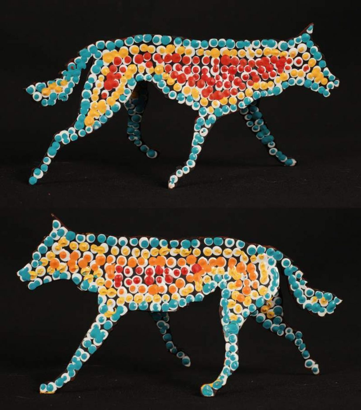 ‘Jarntu’ or ‘maliki’ also feature in a number of ‘Jukurrpa’ (Dreaming) stories. One ‘maliki Jukurrpa’ (dog Dreaming) comes from a site called Pindara, southwest of Yuendumu. Another dog Dreaming story, ‘malikijarra Jukurrpa’ (two dogs Dreaming), comes from country adjacent to Warlarla (Rabbit Flat). This site is part of a long Dreaming track that stretches from Yarrajalpa in the extreme west of Warlpiri country to Warlaku (Ali Curung) in the east. This Dreaming story describes proper conduct in families and marriages.