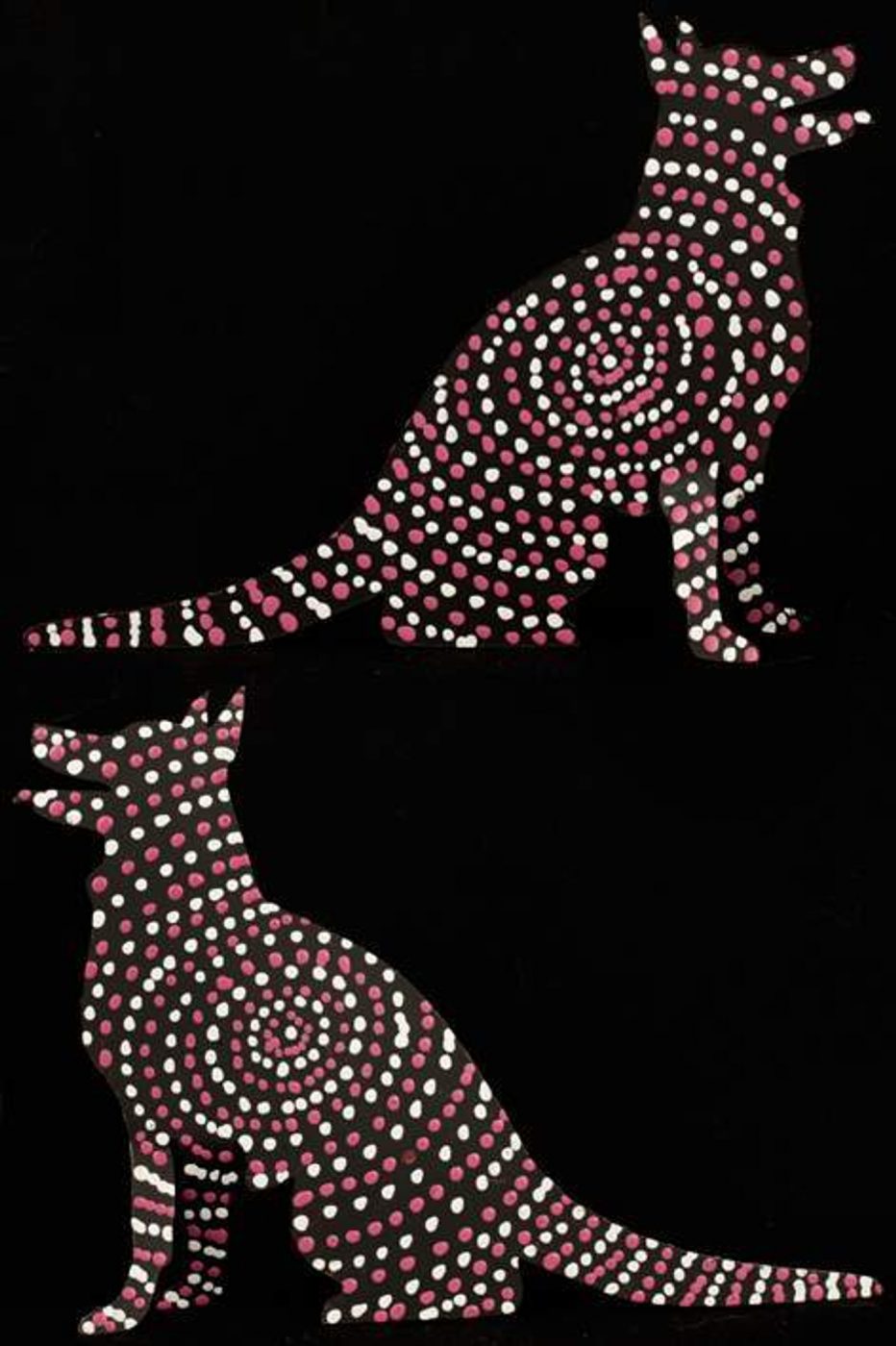 ‘Jarntu’ or ‘maliki’ also feature in a number of ‘Jukurrpa’ (Dreaming) stories. One ‘maliki Jukurrpa’ (dog Dreaming) comes from a site called Pindara, southwest of Yuendumu. Another dog Dreaming story, ‘malikijarra Jukurrpa’ (two dogs Dreaming), comes from country adjacent to Warlarla (Rabbit Flat). This site is part of a long Dreaming track that stretches from Yarrajalpa in the extreme west of Warlpiri country to Warlaku (Ali Curung) in the east. This Dreaming story describes proper conduct in families and marriages.