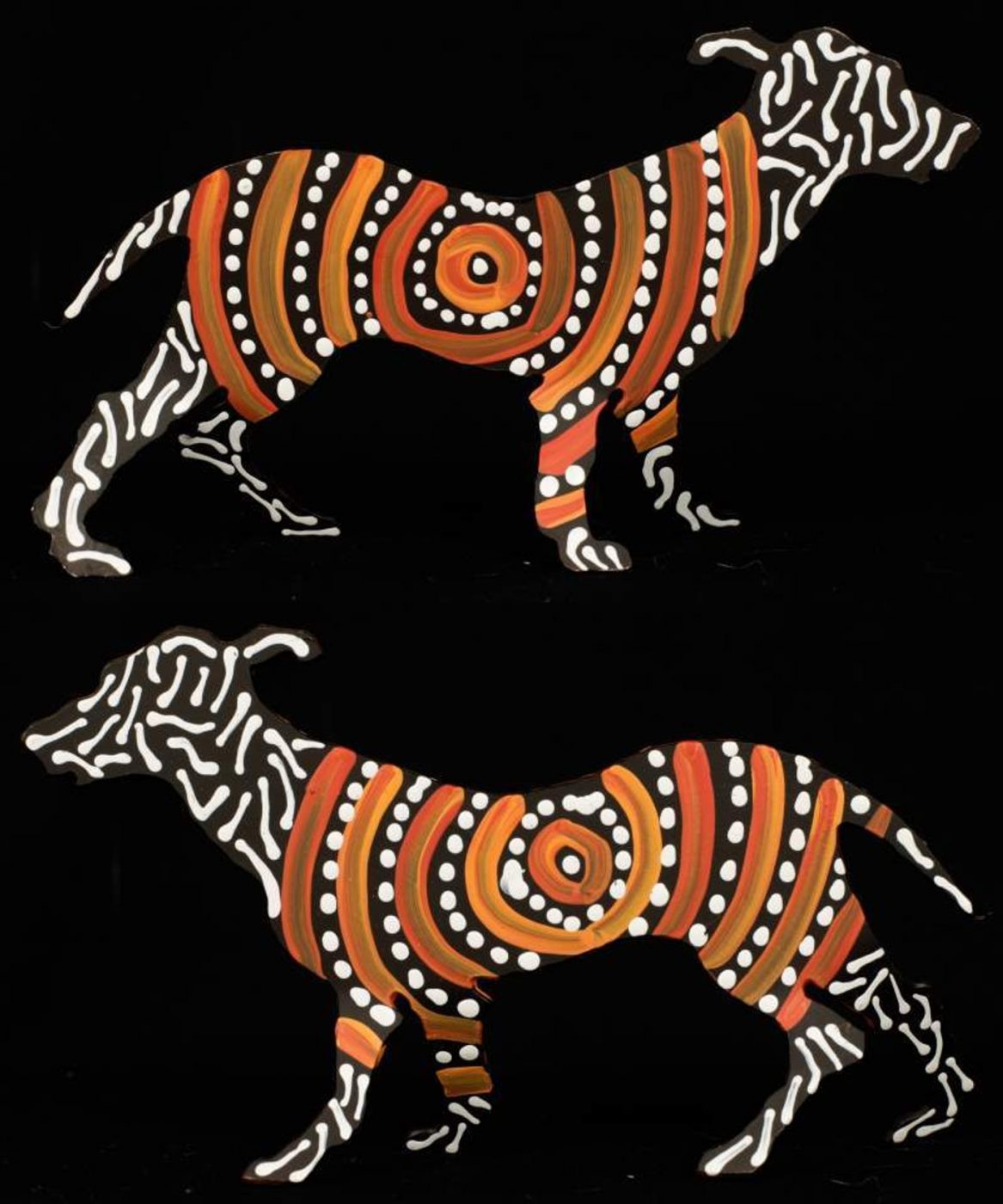 ‘Jarntu’ or ‘maliki’ also feature in a number of ‘Jukurrpa’ (Dreaming) stories. One ‘maliki Jukurrpa’ (dog Dreaming) comes from a site called Pindara, southwest of Yuendumu. Another dog Dreaming story, ‘malikijarra Jukurrpa’ (two dogs Dreaming), comes from country adjacent to Warlarla (Rabbit Flat). This site is part of a long Dreaming track that stretches from Yarrajalpa in the extreme west of Warlpiri country to Warlaku (Ali Curung) in the east. This Dreaming story describes proper conduct in families and marriages.