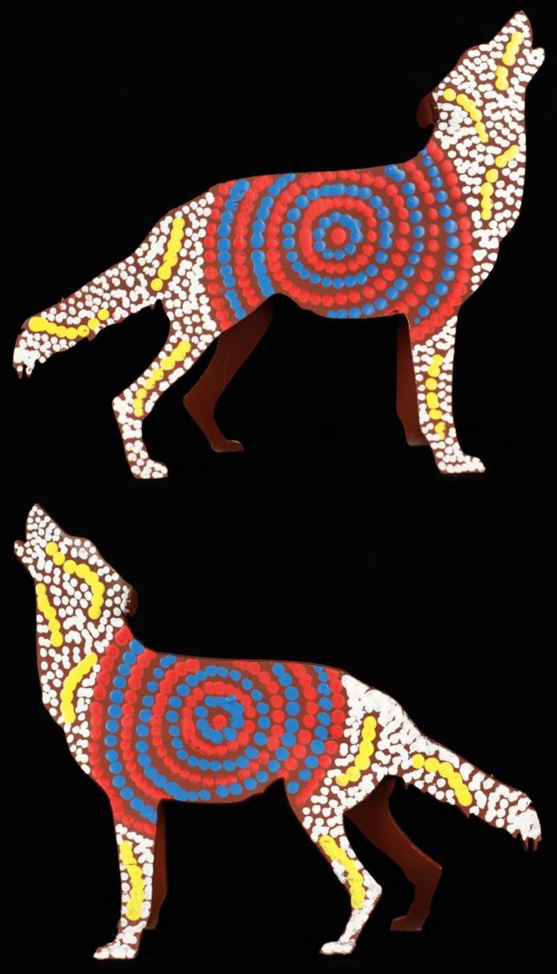 ‘Jarntu’ or ‘maliki’ also feature in a number of ‘Jukurrpa’ (Dreaming) stories. One ‘maliki Jukurrpa’ (dog Dreaming) comes from a site called Pindara, southwest of Yuendumu. Another dog Dreaming story, ‘malikijarra Jukurrpa’ (two dogs Dreaming), comes from country adjacent to Warlarla (Rabbit Flat). This site is part of a long Dreaming track that stretches from Yarrajalpa in the extreme west of Warlpiri country to Warlaku (Ali Curung) in the east. This Dreaming story describes proper conduct in families and marriages.