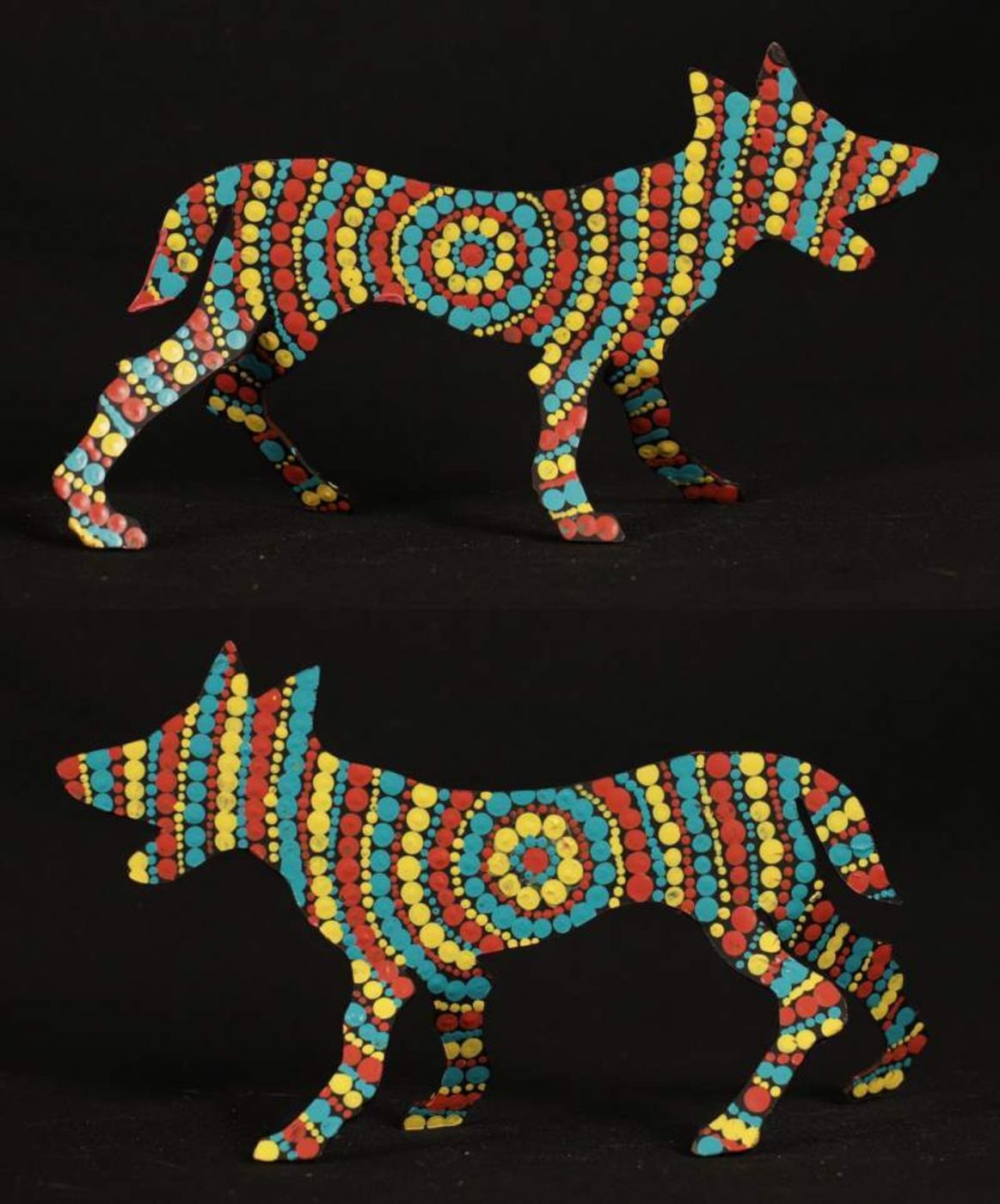 ‘Jarntu’ or ‘maliki’ also feature in a number of ‘Jukurrpa’ (Dreaming) stories. One ‘maliki Jukurrpa’ (dog Dreaming) comes from a site called Pindara, southwest of Yuendumu. Another dog Dreaming story, ‘malikijarra Jukurrpa’ (two dogs Dreaming), comes from country adjacent to Warlarla (Rabbit Flat). This site is part of a long Dreaming track that stretches from Yarrajalpa in the extreme west of Warlpiri country to Warlaku (Ali Curung) in the east. This Dreaming story describes proper conduct in families and marriages.