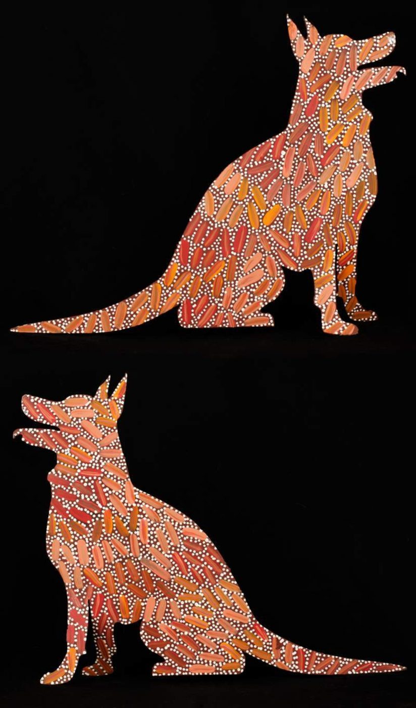 ‘Jarntu’ or ‘maliki’ also feature in a number of ‘Jukurrpa’ (Dreaming) stories. One ‘maliki Jukurrpa’ (dog Dreaming) comes from a site called Pindara, southwest of Yuendumu. Another dog Dreaming story, ‘malikijarra Jukurrpa’ (two dogs Dreaming), comes from country adjacent to Warlarla (Rabbit Flat). This site is part of a long Dreaming track that stretches from Yarrajalpa in the extreme west of Warlpiri country to Warlaku (Ali Curung) in the east. This Dreaming story describes proper conduct in families and marriages.