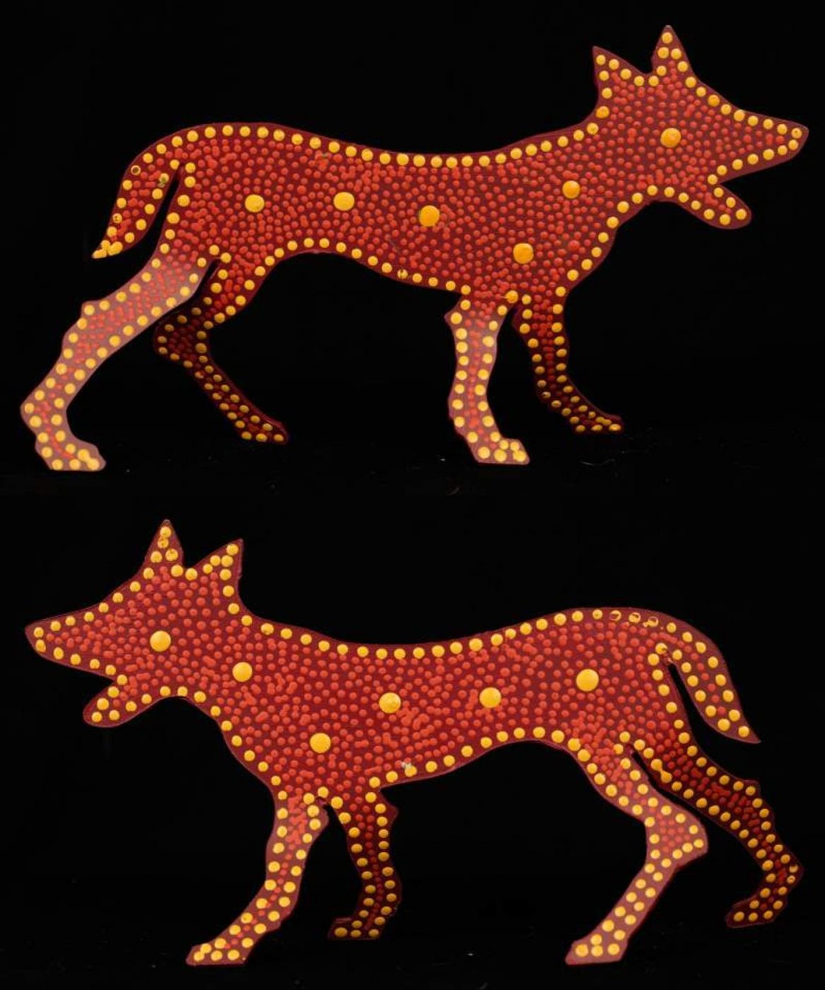 ‘Jarntu’ or ‘maliki’ also feature in a number of ‘Jukurrpa’ (Dreaming) stories. One ‘maliki Jukurrpa’ (dog Dreaming) comes from a site called Pindara, southwest of Yuendumu. Another dog Dreaming story, ‘malikijarra Jukurrpa’ (two dogs Dreaming), comes from country adjacent to Warlarla (Rabbit Flat). This site is part of a long Dreaming track that stretches from Yarrajalpa in the extreme west of Warlpiri country to Warlaku (Ali Curung) in the east. This Dreaming story describes proper conduct in families and marriages.