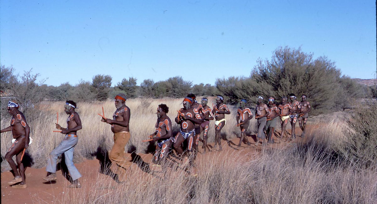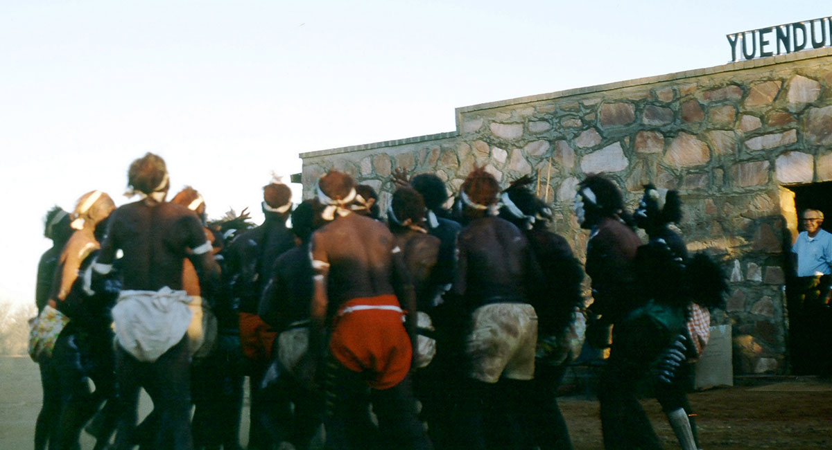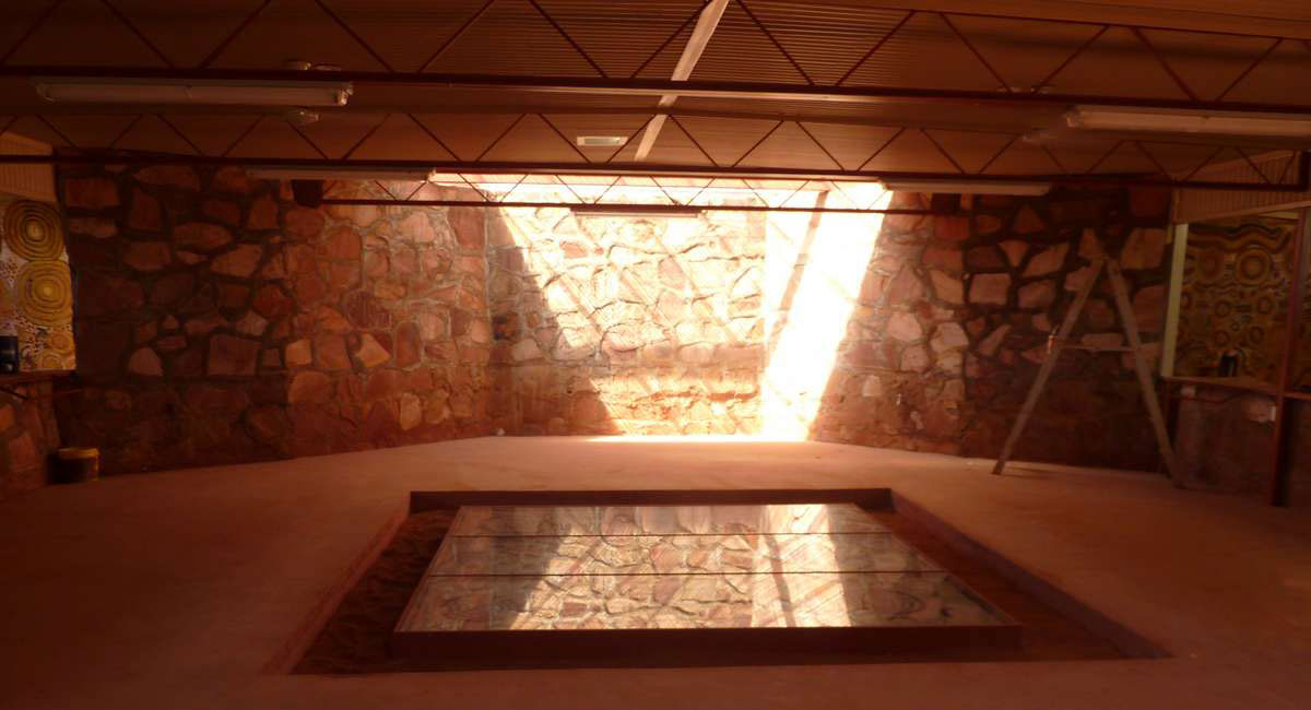 “The Yuendumu Men’s Museum first opened in 1971 as a repository for Warlpiri art and heritage. From the very beginning this was a Warlpiri project, the first of its kind in Aboriginal Australia. The building was designed for ceremonial events, for their remarkable ground paintings, and to house important objects.
